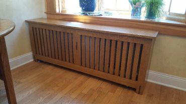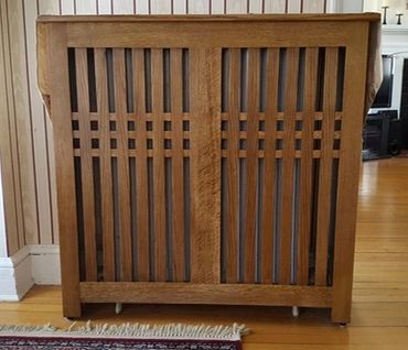 West Hartford Radiator Cover (WHRC) offers full design and build services. We do not mass-produce. We design and make limited quantities of well-built wooden radiator covers for fine homes. These covers are tailor-made to the particular space in which they will reside. They are intended to beautify the home and complement the existing interior. As in the image show on the landing page, WHRC often produces radiator covers in the Arts & Crafts style that was popularized by workshops such as Stickley, Roycroft, Limbert, Frank Lloyd Wright, and others of that period. WHRC’s radiator covers are constructed using top quality materials and the strongest traditional joinery methods; they are not simply glued and screwed or doweled together. WHRC also designs and builds other built-in and free-standing furniture that can complement the style of the radiator covers, such as bookcases, tables, benches, sideboards, and wine cabinets.